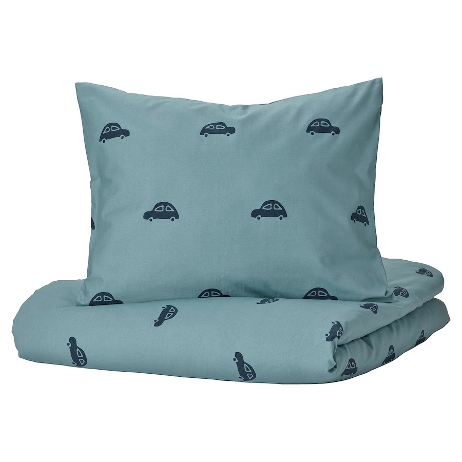 IKEA BARNDRÖM Duvet cover and pillowcase, car pattern/blue, 150x200/50x80 cm