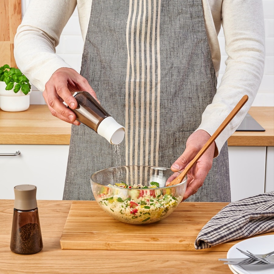 IKEA HALVTOM Salt and pepper shakers, glass/brown, 12 cm