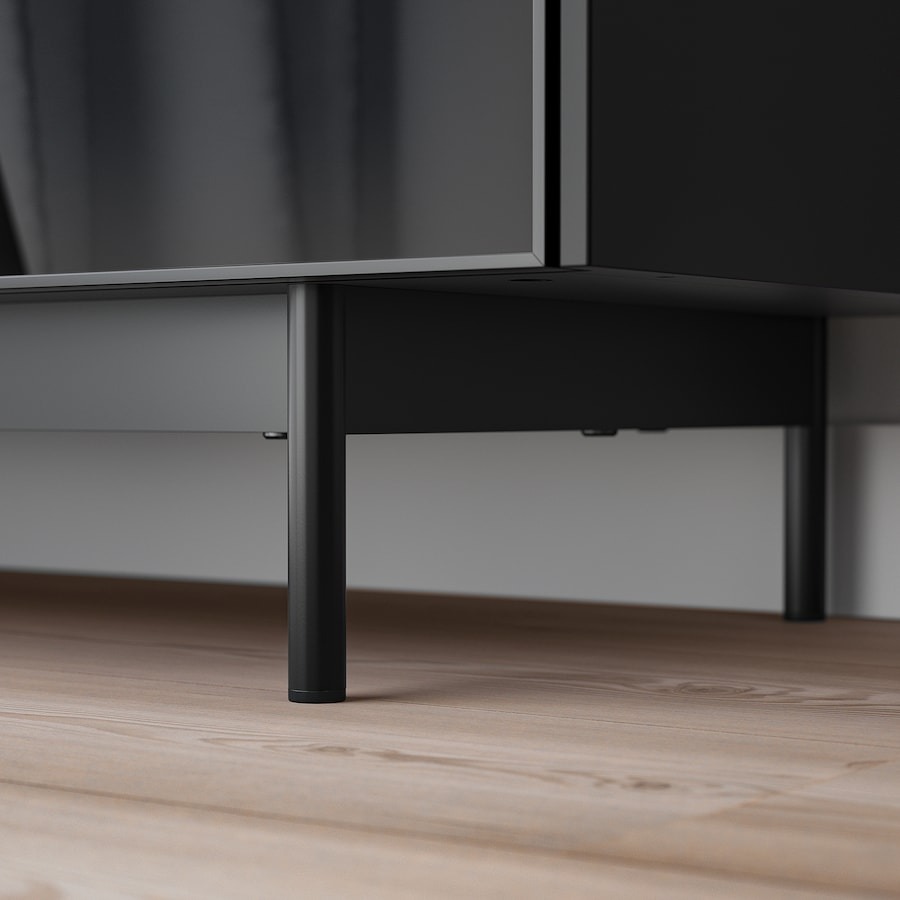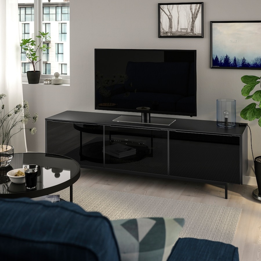 IKEA RANNÄS TV bench with doors, black/black glass, 178x42 cm
